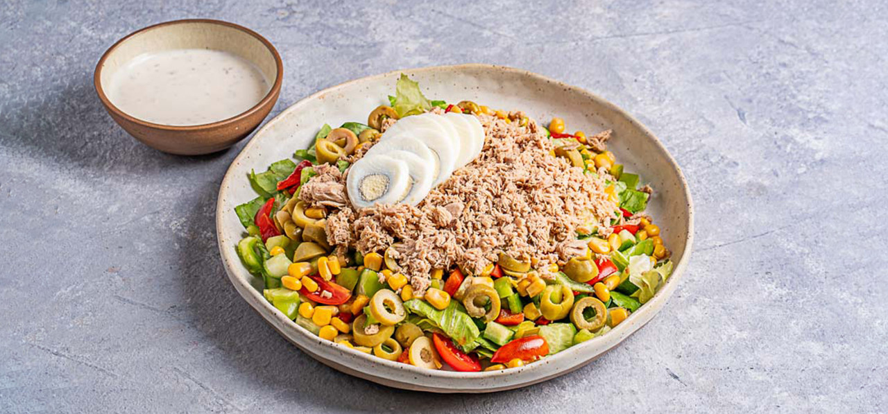 חסה, מלפפון,עגבניה, גמבה,תירס,זיתים ירוקים,טונה,ביצה