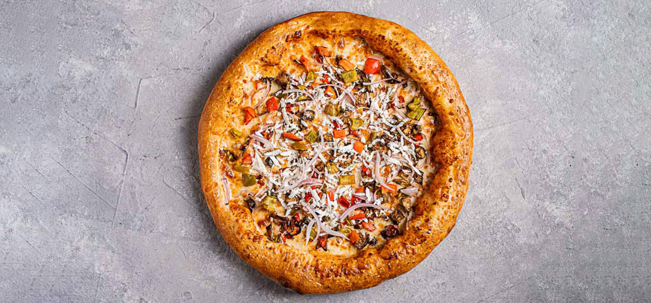 פיצה בגודל ענק עם רוטב רוזה עדין המשלב עגבניות ואלפרדו, מיקס גבינות איכותיות ותוספות מגוונות.