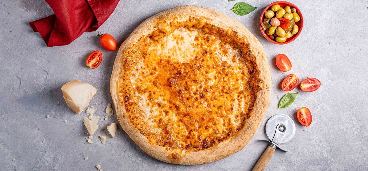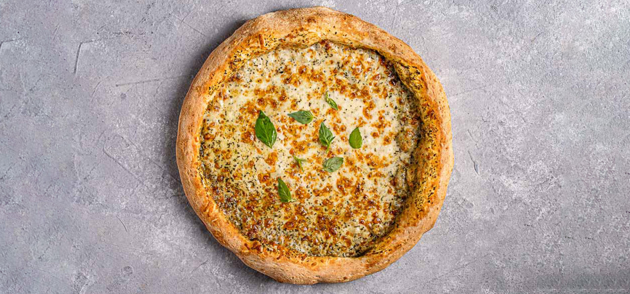 פיצה אישית בבצק ללא גלוטן, רוטב עגבניות איטלקי, ומיקס גבינות איכותיות.