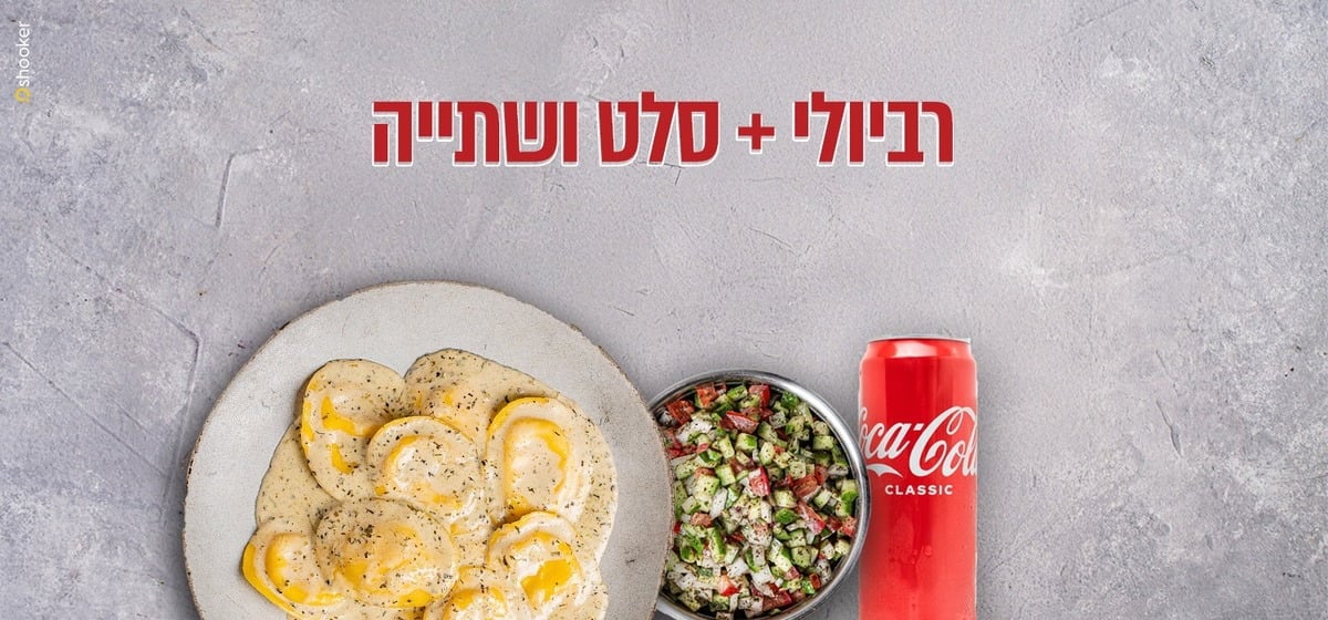 ארוחה עסקית עם מנת רביולי לבחירה, סלט אישי, שתייה.