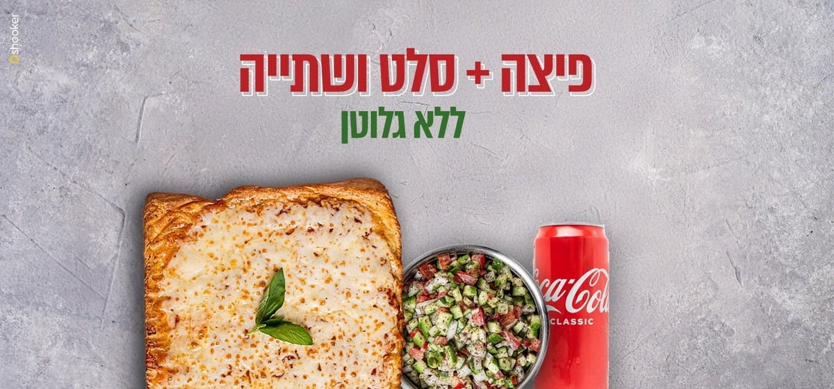 ארוחה עסקית אישית עם פיצה ללא גלוטן, סלט אישי, שתייה.